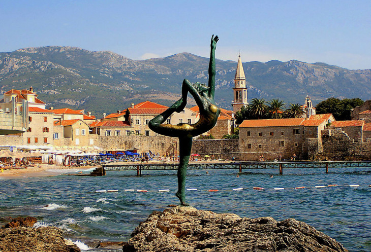 У самого начала дорожки на пляжи находится один из символов Будвы – изящная статуя Балерины: