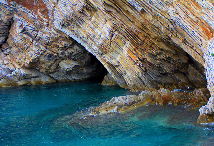 Все начинают щелкать фотоаппаратами, а мне немного взгрустнулось – при взгляде на эти скалы вспомнились греческие красоты, так похожие на черногорские! И море по цвету ну точь-в-точь, то ярко-зеленое, то лазурное, то темно-синее. Красота!