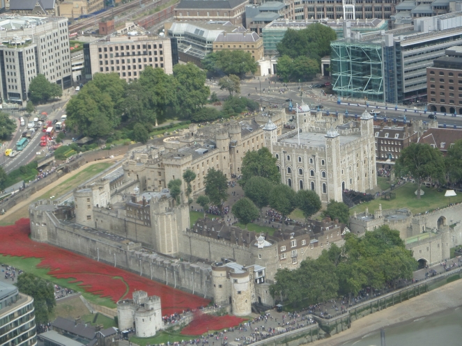 А в Лондоне я непременно хотела попасть в Вестминстерское аббатство, подняться на смотровую площадку на небоскребе "Осколок"(Shard), посмотреть шекспировский театр "Глобус", мемориал леди Дианы в магазине Harrods, красные маки, "высаженные" у Тауэра в память о столетии начала Первой мировой войны. У меня была английская книга-путеводитель с 14 маршрутами по Лондону, которой я намеревалась руководствоваться, но в первый же день поняла, что в одиночку очень трудно смотреть схему и ориентироваться на местности, и когда вместо обещанных 2,5 часов я прокрутилась все 6, от этой затеи отказалась, хотя побывала в таких интересных закоулках, в которые вряд ли бы попала сама. В Вестминстерское аббатство очередь пугала, но со второй попытки минут за 40 я её преодолела. В Shard`е, вроде сеансы, я толком не поняла, кассирша, видя мою бестолковость, вызвала какого-то сотрудника, имеющего представление о русском языке (я не поняла, зачем), мы вместе купили билет, и меня сразу пропустили. В Британский музей я опоздала. Замечательная прогулка оказалась по набережной - от колеса обозрения London Eys, мимо множества мостов, к театру Глобус, а потом и к "Осколку".