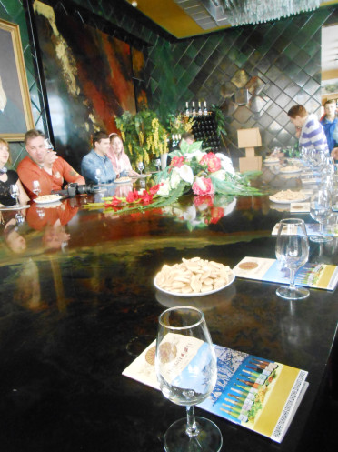 Завершение оказалось самой приятной частью экскурсии, поскольку нас отвели на дегустацию в мраморный зал с большим литым столом и стульями. Из уже имеющихся на заводе 20 видов вин нам на дегустацию предоставили 5 из них.