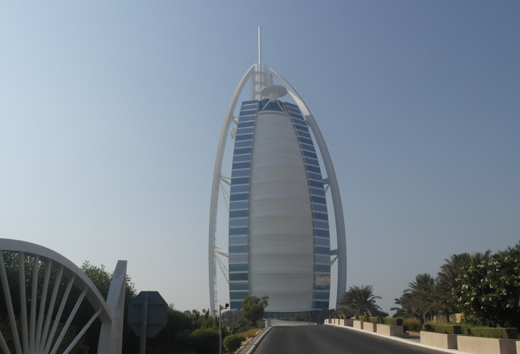 Для справки: в Burj Al Arab вы не найдете простых номеров. Стартовая категория – 2 этажный номер площадью 170 м2, с роскошной гостиной комнатой, баром, королевской спальней и просторной ванной комнатой. Этот самый «простой» номер стоит 1500 $ за одну ночь! Разумеется, желающих остановиться в этом отеле среди нас не нашлось …