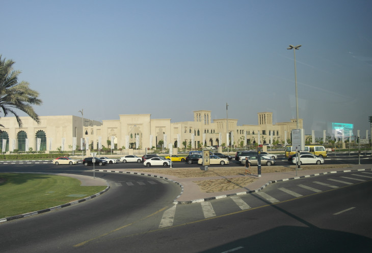 Естественно, места в автобусе уже были не люксовые, а в середине салона и далее, но и в этом мы нашли определённый плюс: во-первых, на остановках (а их было несколько!) мы выходили-заходили первыми в среднюю дверь, пока основная масса туристов не спеша «выползала» в переднюю; во-вторых, было очень удобно фотографировать с любой точки из окон автобуса – ведь вторая половина салона была довольно-таки свободной и мы без особых препятствий передвигались по этому крылу во время движения, когда то справа, то слева «проплывали» значимые сооружения Дубаи, о которых вещала наш гид.