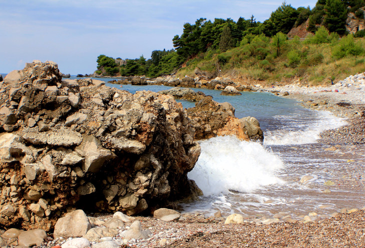 Мы здесь не купались, просто по дороге в Бар решили заехать, очень уж живописные обломки скал в море у самого берега: