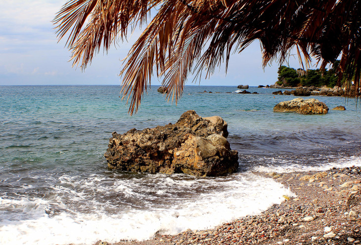 На пляже – галька, местами довольно крупная, заход в море пологий. Очень красивое местечко, окруженное соснами, просто рай для фотографа!