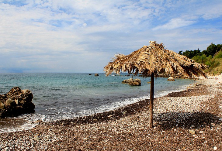 А сразу за мысом Ратац – Београдский пляж, он хорошо виден с дороги по обе стороны, есть съезд на небольшую стоянку, кафе, лежаки и зонтики.