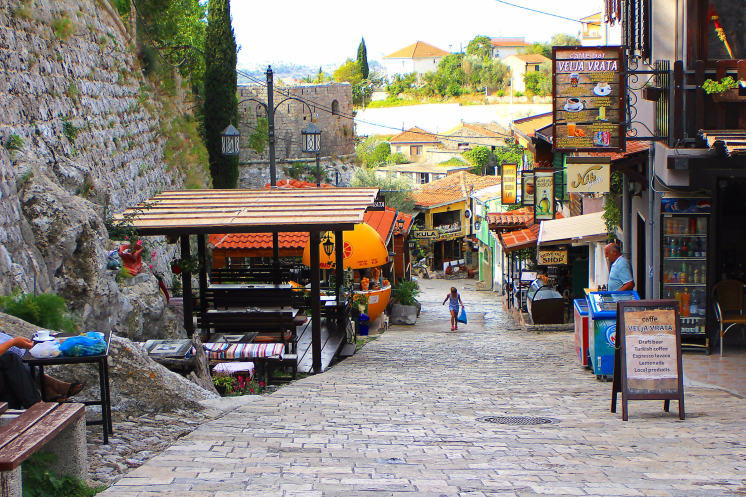 К входу в крепость ведет симпатичная улочка с кафе и сувенирными лавками: