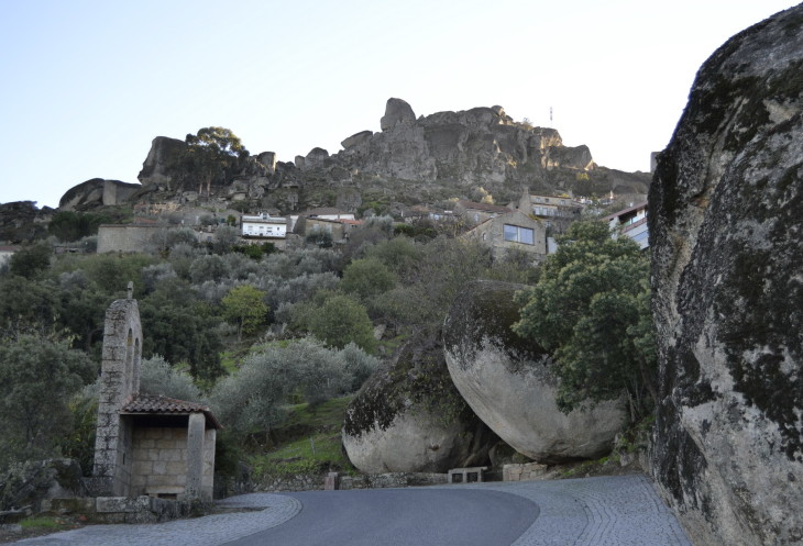 Скорее всего, название означало Священная Гора… Местность будет интересна и географам, и историкам, и просто любителям красивых кадров. Когда тамплиеры строили крепость для охраны южного рубежа молодого королевства Портукале, они и не подозревали, что эта гора — геоморфологическое образование inselberg. Когда-то в незапамятные времена немного лавы выбралось в толщу земной коры и застыло, образовав гранитный шар. С ходом времени, более мягкие породы, окружающие этот комок, разрушились и осели, появилась долина с гранитным останцем. Сам монолит под воздействием дождей и ветров превратился в груду огромных валунов. Именно эту доминирующую неприступную высоту, подступы к которой просматривались на десятки км, и выбрали рыцари для возведения крепости. Рядом с крепостью, со временем, выросла небольшая деревня, в которой гранитные валуны иногда служат крышей, стеной и полом домам! Благодаря своему колориту, Монсанту получил титул "самая португальская деревня"в 1938г., подтверждением чего является серебрянный петух, хранящийся в мэрии. Копия же этого петушка венчает Башню с Часами.
