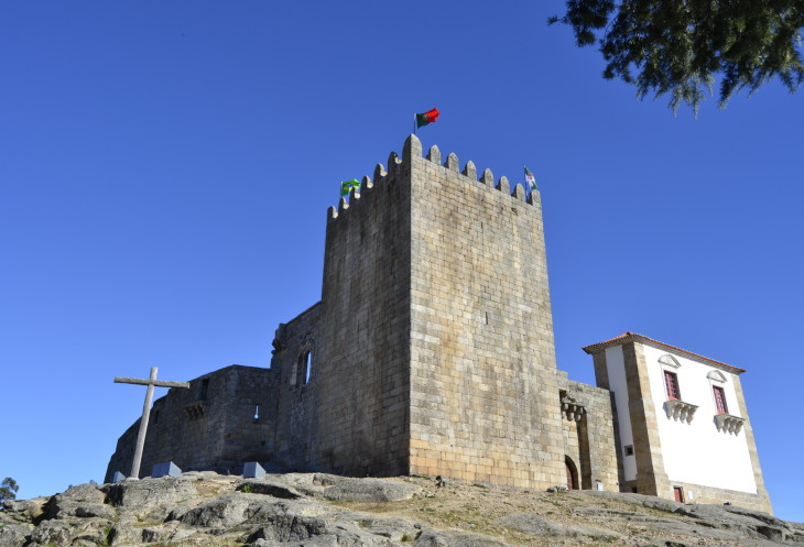 Мы от единого билета отказались, так как планы стремительно поменялись— было решено проводить солнце на самой высокой точке континентальной Португалии, а путь туда — трудный. До обеда мы зашли только в Еврейский музей (2,50 евро/чел). К сожалению, фотографировать там запрещено, поэтому показывать вам нечего.. Выпив galão (кофе с молоком) с местным кренделем, мы дождались открытия замка. Вход в замок — бесплатный, виды с обзорной площадки основной башни— замечательные!