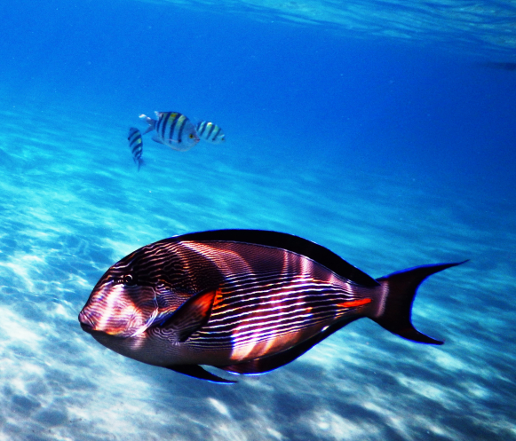 Морская прогулка была организована совместно для дайверов и для тех, кто просто хотел поплавать в открытом море у коралловых рифов. Народу было много, но погружались всего семь человек. Из семи человек только двое дважды. Догадайтесь, кто это был? - Опыт есть? -спросил инструктор. - Немножко есть, но инструктаж давайте полный, - (а вдруг мы что-то забыли за год?). Пока мы проходили инструктаж наше судно стало бок о бок с таким же судном. Между бортами тут же засуетились рыбки. Сверху они очень яркие и смешные.