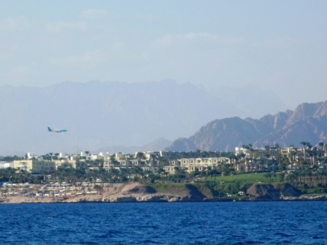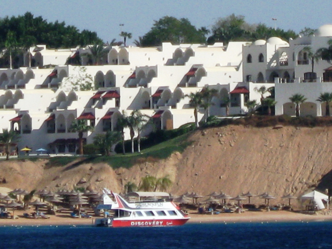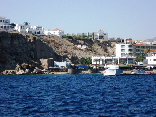 С борта видны были обрывистые берега песочно-желтого цвета с широкими пятнами белых отелей.
