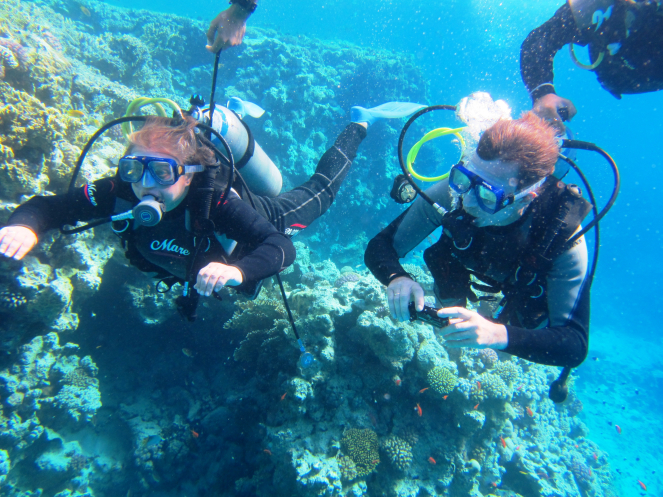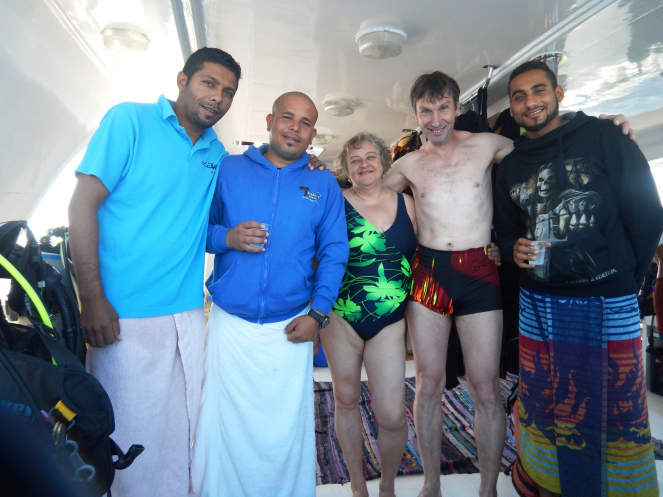 Нас инструкторы заценили. И за два погружения, и за неспешность в воде, и за дисциплину. Даже сфоткались с нами всей командой.