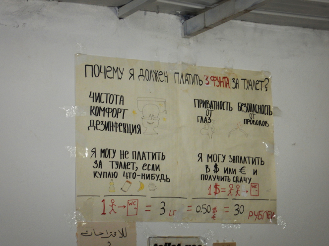 Из отеля нас забрали в полночь. В пути у нас была одна остановка на автозаправке, запомнившаяся таким вот плакатом для непонятливых.