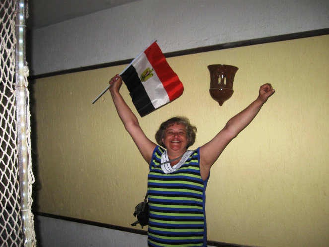 Атмосфера всеобщего веселья передалась и нам. Уходить от этих радостных молодых людей совсем-совсем не хотелось. -Украина?, - спросил меня молодой человек.- Руси,- прозвучал мой ответ, -Москва. Парнишка задорно улыбнулся и, протянув мне маленький Египетский флаг, пригласил: - Приезжай еще! Руси - хорошо!