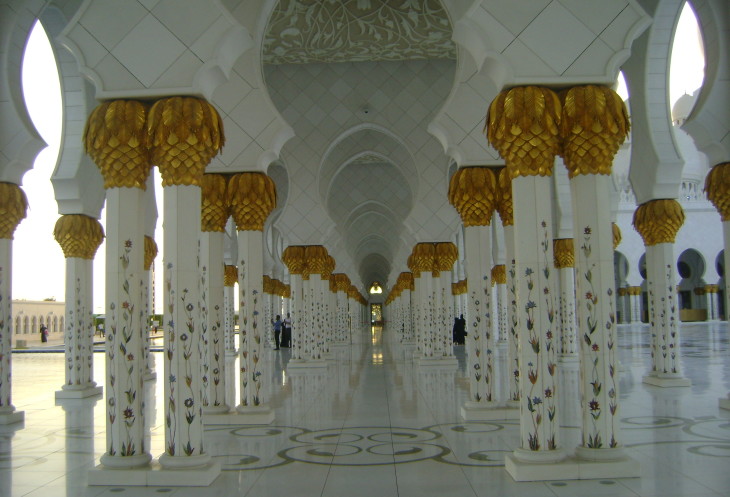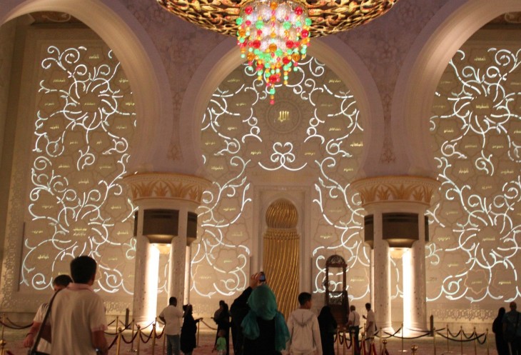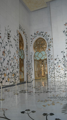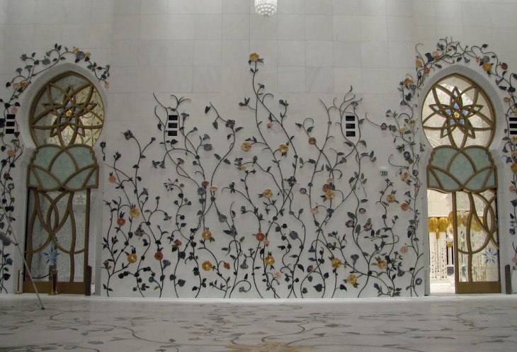 Стены мечети шейха Зайда также поражают своей красотой! Для оформления цветущих лоз использованы тысячи редких и красивых камей: красный агат, аметист, оникс, лазурит, жемчуг.