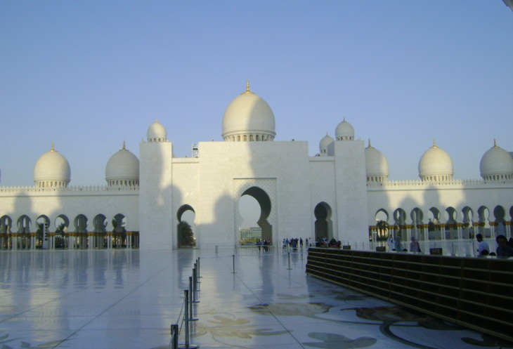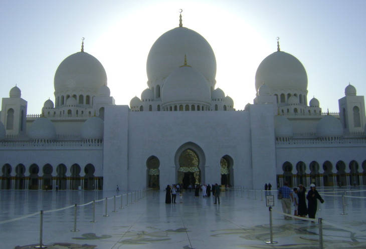 Строительство «Белой мечети» (иногда её еще называют «Большая мечеть»), на которую было потрачено свыше 500 млн. долларов, велось с невиданным размахом: мрамор — из Италии и Китая, ковры — из Ирана, люстры — из Германии и Австрии, инженеры и архитекторы - из Европы, Америки, Азии. Для её внутренней отделки были использованы полудрагоценные камни и золото, природный камень и мрамор, керамика и горный хрусталь.