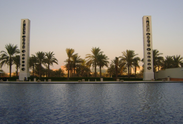 Мечеть шейха Зайда окружена искусственными водоёмами, в которых отражаются её белоснежные купола и цветастые колонны. Бассейны отражают живописный вид мечети, который становится ещё более великолепным в ночное время.