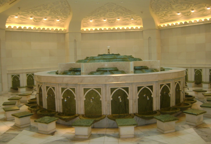 Мусульмане совершают перед входом в мечеть ритуальные омовения (вуду). Для этого имеются специальные комнаты, где имеются умывальники. Чистота в них изумительная! Интересен факт, что мужчины ходят там только босиком или в специальных тапочках, женщинам же разрешается находиться в обуви! Мы не стали заходить в эти комнаты, уважая чувства истинных мусульман.