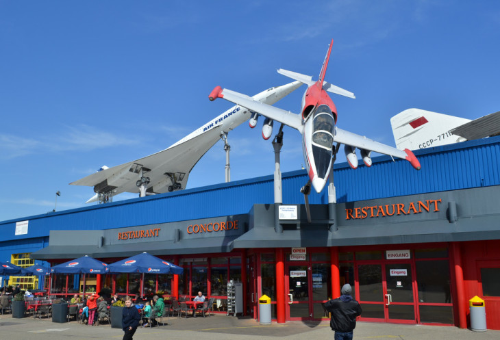 На этом с первым павильоном было покончено и мы перешли во второй. Там собраны болиды Формула-1, локомотивы, коллекция автомобилей «Мерседес» и «Майбах», гоночные автомобили, мотоциклы и олдмобили. Кроме того, через второй павильон можно подняться на крышу павильона к самолетам, возвышающимся над ним. В частности, к сверхзвуковым пассажирским самолетам «ТУ-144» и «Конкорд».