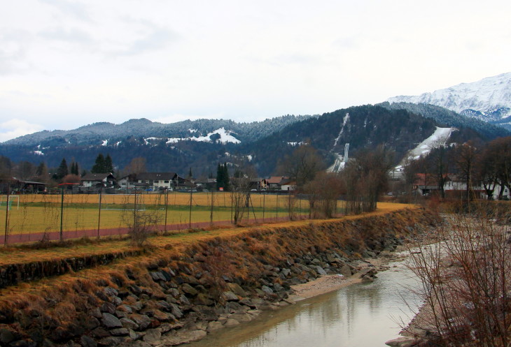 Полтора часа от Мюнхена до Гармиш- Партенкирхена пролетели незаметно. Скоротать время мне помогли не только завораживающие виды, но и мой фотоаппарат, который никак не хотел делать больше 3-4 снимков, постоянно отключаясь. Дело в том, что в моем багаже ну никак не находилось места для фотоаппарата, все вошло, а его пристроить было некуда, только если на шею повесить- но эта перспектива меня не устраивала. И тогда, договорившись с дочерью, что она мне даст свой фотоаппарат, я решила взять только объектив и карту памяти. И вот с этим сборным фотоаппаратом я и отправилась в свое первое путешествие. Я даже не думала, что с ним могут быть проблемы. А он настойчиво выключался . И включался он только после того, как я вынимала из него батарею и возвращала ее назад. Вроде ничего страшного, но настроение и так было уже подпорчено не очень хорошей погодой. А когда я приехала в Гармиш- Партенкирхен, то вообще впала в ступор.