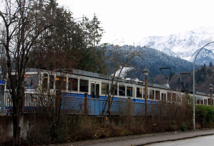 Zugspitzbahn -поезд очень необычный. Сначала он движется по обычным рельсам до станции Айбзее . Возле этой станции находится одноименное горное озеро . Потом у поезда опускается посередине специальная шестеренка и поезд начинает подниматься вверх, в гору, по специальной зубчатой колее. Причем почти весь путь от озера, он идет в туннеле. Конечная остановка поезда на Цугшпитцплатт – плато на высоте 2650 м, где находится горнолыжный центр и панорамный ресторан. А на самую вершину горы ведет фуникулере.