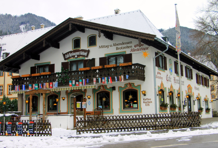 Но следующий автобус был бы только через полтора часа, а я ведь еще собиралась заехать в Обераммергау. Хотя я там и была уже, но осталось кое-что, что я не увидела в прошлый приезд, и хотелось в этот раз исправить недочет прошлого путешествия. Я стояла на остановке, а автобуса все не было, что совсем не типично для немецкого транспорта. Уже прошло больше 15 минут, когда он должен был приехать. Потом стали подходить к остановке люди и я поняла, что посмотрела не на то расписание. В результате я простояла на остановке около 40 минут, хорошо, что день был достаточно теплым, но все равно я озябла. Лучше бы я пошла в ресторан, спокойно поела и отогрелась, расстроенно подумала я. Но в путешествиях часто так бывает, хочется увидеть побольше и из-за этого приходится чем-то жертвовать.