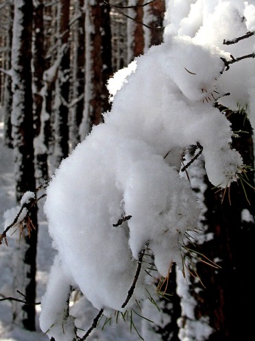 Собственно впервые я это увидел в тех же местах лет пять назад, сфотографировав вот такую прелестную снежную кошку, явно уставшую от беготни по сугробам, прилегшую отдохнуть не сосновой ветке, да и неожиданно для себя, задремавшую.