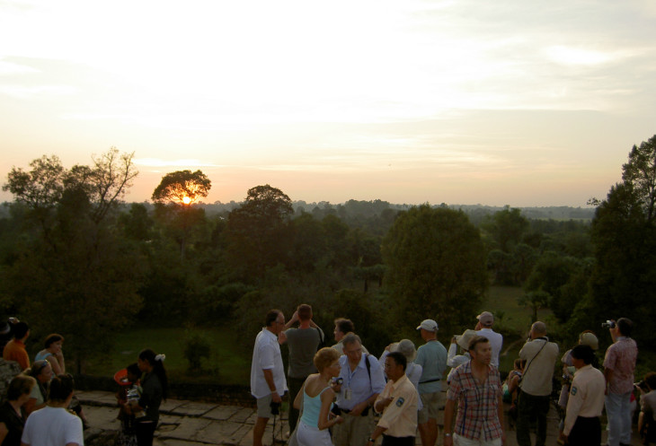 Закат солнца встретили в храме Бантей Кдей – когда мы поднялись по ступеням наверх, там уже было полно туристов всех национальностей, ожидавших, когда солнце сядет в джунгли. В принципе красиво, хотя я бы не сказал, что это какое-то особенное зрелище.