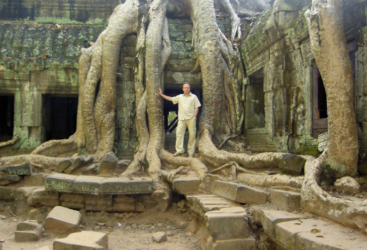 Кимли оказался прав, посоветовав начать осмотр с Та Прома. Мы приехали туда практически в гордом одиночестве, но уже минут через 20 нас догнала куча туристов – в основном китайцы. Впрочем, попадались и соотечественники, которые бодро карабкались по деревьям и кричали: «Ну давай уже, снимай, долго я так не провишу». В Та Проме, действительно, есть, что сфотографировать. Это не только обвитые корнями развалины, но и внушительные, просто огромные деревья.