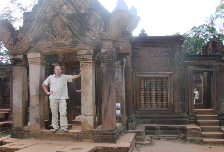 Храм Бантей Срей очень понравился, это, наверное, одно из самых красивых сооружений в Ангкоре. Небольшой по размеру, он очаровывает своей просто фантастической резьбой по камню. К тому же храм построен из розового песчаника, и эффектно выглядит перед заходом солнца. Бантей Срей находится в тихом месте, туристов здесь единицы. Все это настраивает на неспешное любование тонким искусством древних кхмерских резчиков.