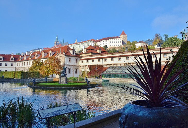 Вальдштейнский сад-ещё одно тихое место в самом центре Праги. Пара шагов от станции метро Малостранска и вы можете наслаждаться видами Дворца и сада. Во Вальдштейнском дворце заседает Чешский Сенат. Сад в бесплатном доступе для туристов. Во время постройки этого комплекса в 1623-1630 годах было снесено 7 садов, 22 дома и дворец Трчков. Инициатором постройки был воевода Альбрехт. Дворец в стиле раннего барокко.