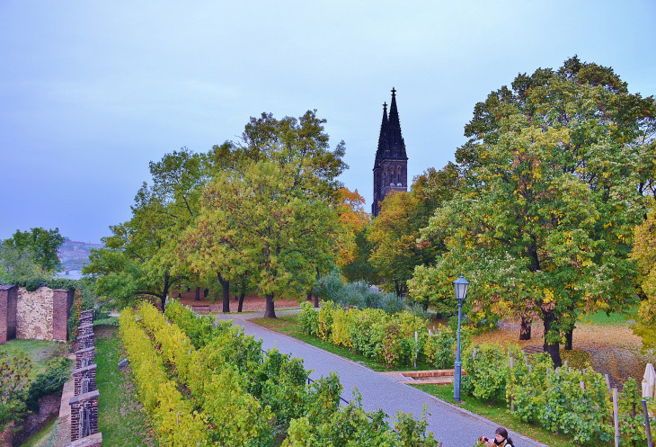 Вышеград. Хоть и придётся приложить некоторые усилия, чтобы оторвать себя от центра Праги, но всё же стоит посетить это уютное место. Здесь великолепный променад вдоль крепостных стен, множество удобных скамеек. Виды и в сторону Пражского града, и на окраины города, куда так манит Влтава, очень запоминаются. Кроме этого, ажурные купола готического собора Петра и Павла видны со многих дорожек парка и украшают прогулку.