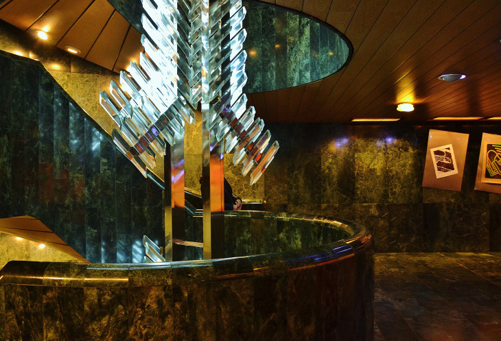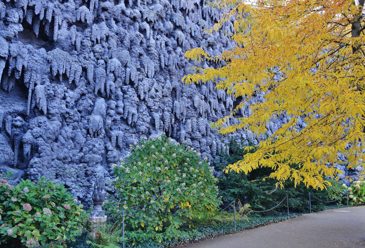 Сталактитовая стена в стиле садового маньеризма призвана олицетворять контраст естественной красоты и искусственной среды. Справляется неплохо, на мой взгляд, с этой задачей.
