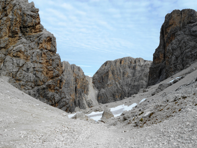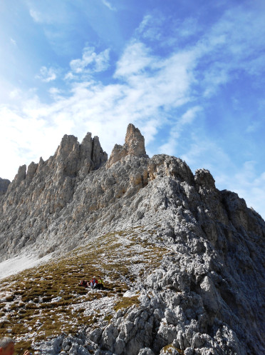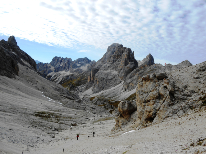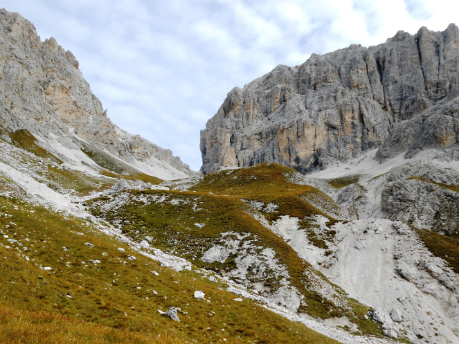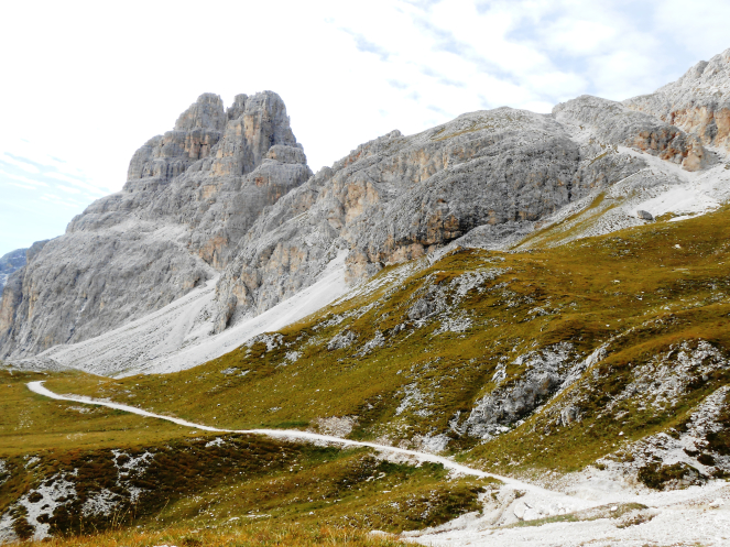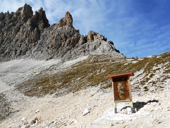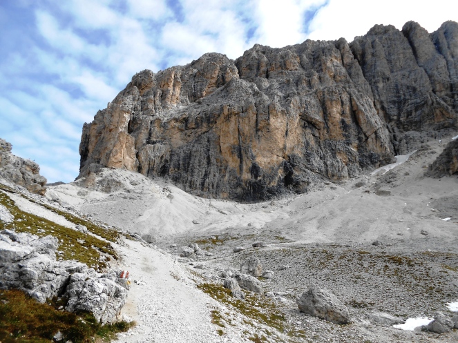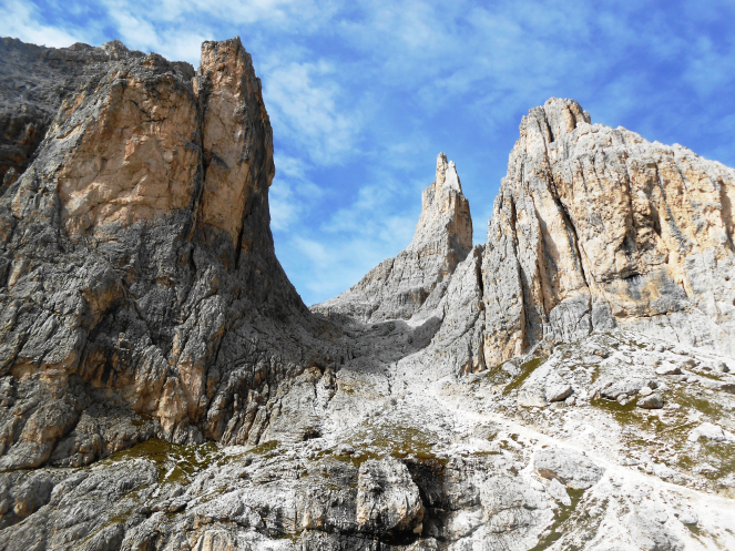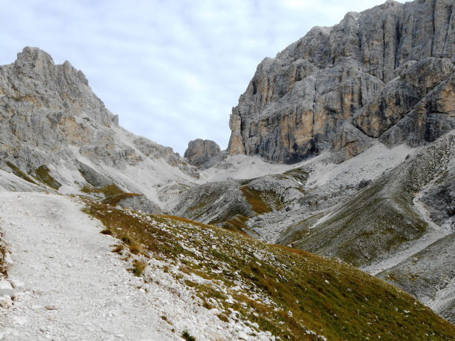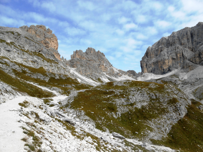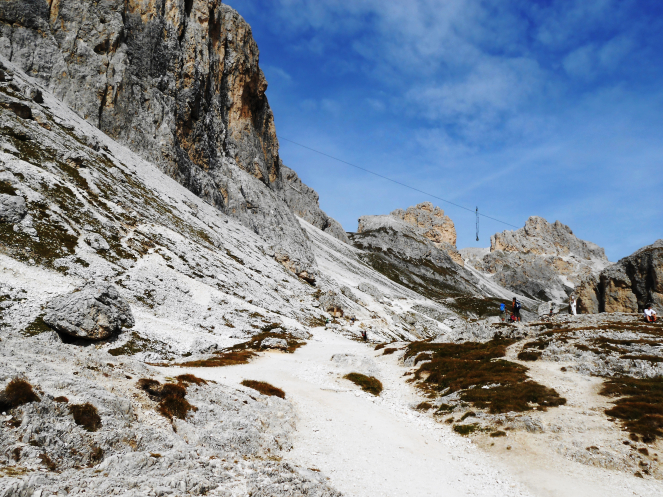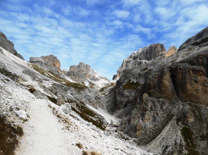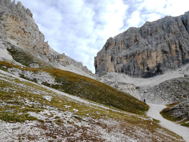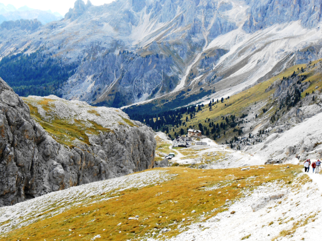 Держим путь от Ciampedie (1992м) в Valle del Vaiolet. Дальше тропа начинает подниматься круто вверх - к рифуджио (приюту-гостинице) Вайолет. Вместе с нами до рифуджио Вайолет поднимается довольно много народа самого разного возраста.
