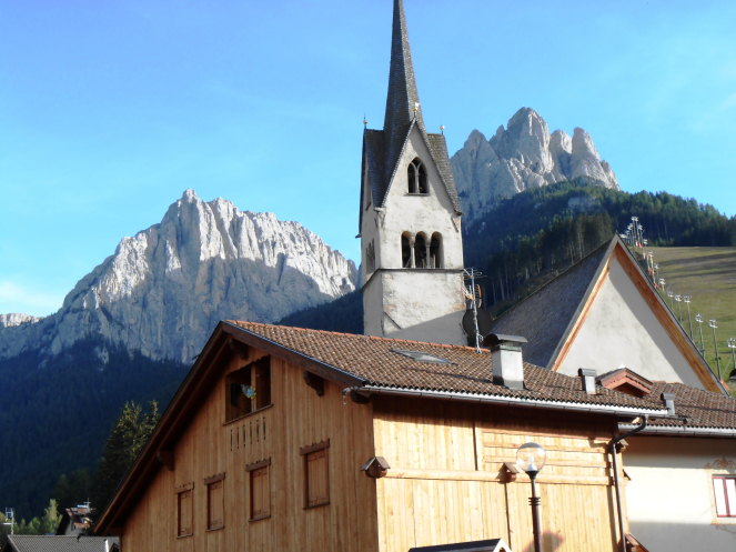 На вершине открывается обширный вид на долину святого Николая, а с другой стороны – вид простирается от Catinaccio (он же Rosengarten) до Sassolungo и Sella.