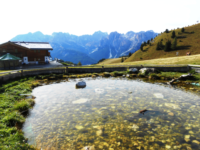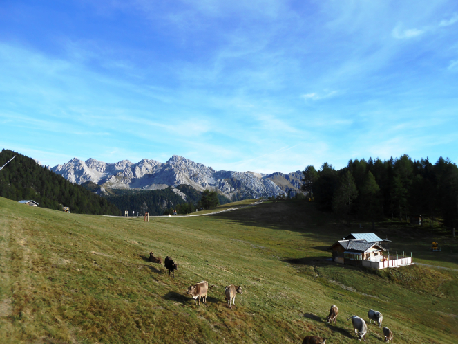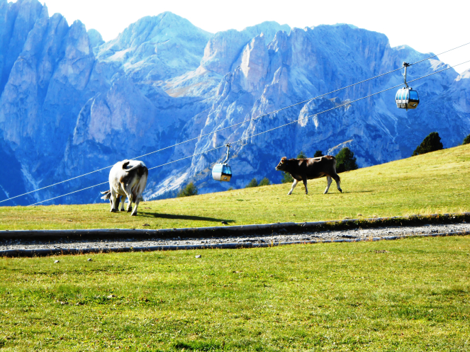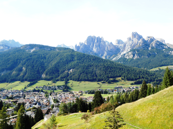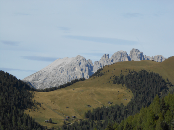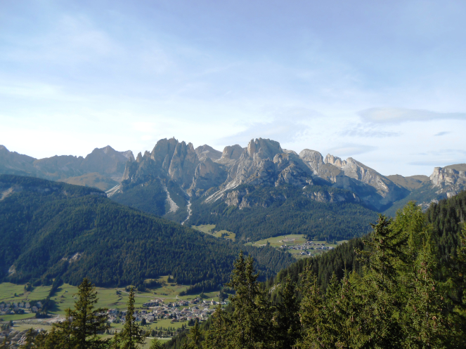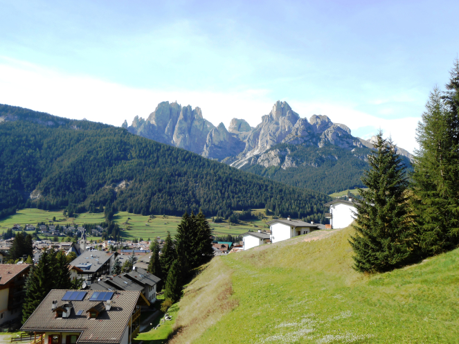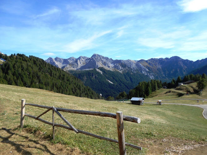 Наш последний день в долине Фасса мы решили посвятить пешему хождению по горному массиву Катиначчио. С Перы ди Фасса мы поймали маршрутку, которая довезла нас к Чиампедие (Ciampedie), само название которого означает «Божье Поле».