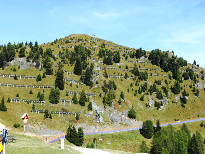 Фуникулер, расположенный в Поцца ди Фасса (Funivie Pozza - Bufaure), позволил нам добраться до станции Buffaure, находящемся на 2 060 м. над уровнем моря.