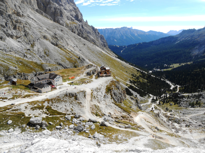 Великолепные виды открываются на все вершины долины Фасса, в частности на Сассолунго, Селла и Мармоладу.