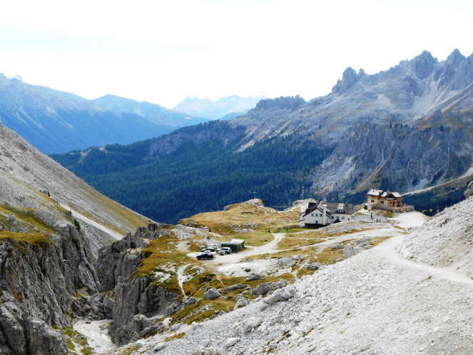 А с высоты долина Вайолет всего-то представляет собой площадку, на которой соседствуют два рифуджио – Преус (маленькое коричневое) и Вайолет (белое большое).