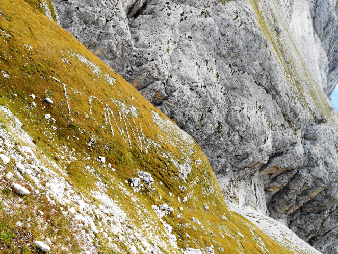 От долины Вайолет мы держим путь по верхнему склону долины. Склон не такой крутой как "виа феррата", но местами осыпающийся.