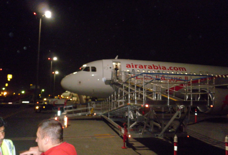 Аэробус 320, как оказалось довольно таки просторный самолет, который сделан для Эирарабия по индивидуальному заказу и в котором специально уменшено количество пассажиров но увеличено расстояние между креслами. Самолет состоит и трех кресел с двух сторон, посредине которых идет коридор. Спереди и сзади самолета есть туалеты, огромные багажные отсеки над головой. Один дискомфотр - это звук, со временем он здорово надоедает.