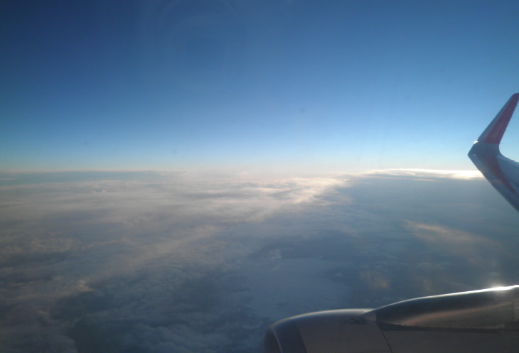 Так как мы летели в первый раз то волнение и страх были очень сильными. Перед вылетом, по совету друзей, мы выпили таблетки от укачивания и борясь со страхом готовились взлететь. Нас вывели из зоны посадки на самолет специальным буксиром и самолет дальше самостоятельно отправился к зоне взлета. Сердце колотилось и казалось сейчас вылетит..... Выйдя на зону взлета самолет остановился....вскоре турбины его злобно взвыли и самолет побежал по взлетной полосе набирая скорость. В это время меня настолько одолел страх что думал, все, этот полет первый и последний в моей жизни...но вот самолет резко пошел вверх набирая высоту и у меня начало залажывать уши и дышать я стал через раз, я задыхался от страха. Сейчас это смотрится уже смешно но тогда.... Это был ужас к которому я привык спустя некоторое время. И вот я уже аклиматизировался, понял, что не все так и страшно и начал даже поглядывать в иллюминатор и делать фото.