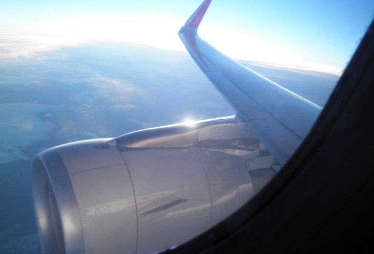 Посадку на самолет объявили за пол часа до вылета и вскоре мы оказались в самолете, мне выпало место у иллюминатора в районе крыла.