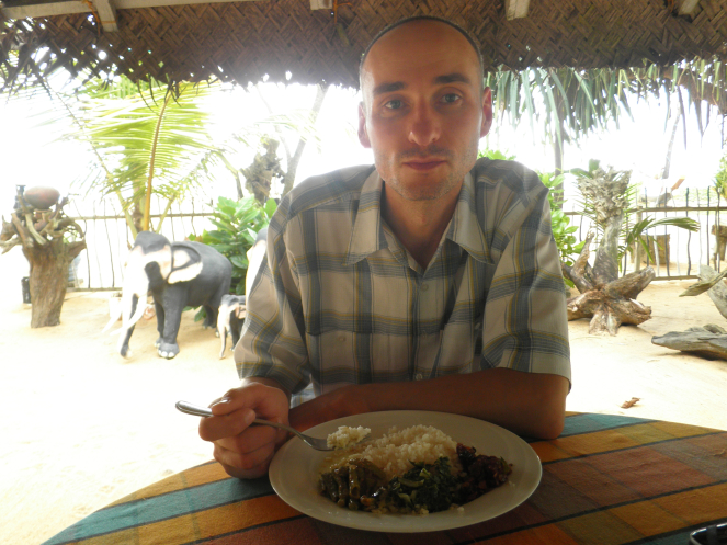 Так как мы хотели кушать то направились к кафе Парадиз, которое находится слева при выходе с территории отеля на побережье Индийского океана. О нем мы узнали еще будучи дома из форумов, а потом и от Лашана, ведь хозяева этого кафе его дядя с тетей. Туда мы и подались.