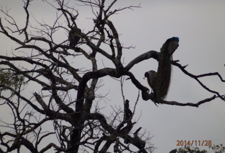 Вскоре увидели семью мирно пасущихся у края дороги оленей. А спустя еще какое то время мы остановились на берегу озера, вышли из баса разомнять ноги полюбоваться красотой. Это просто изумительно, хочется часами сидеть здесь и никуда не торопится. В озере плавали пеликаны.... Дальние горы завораживали своей красотой.... На деревьях еще спали павлины.