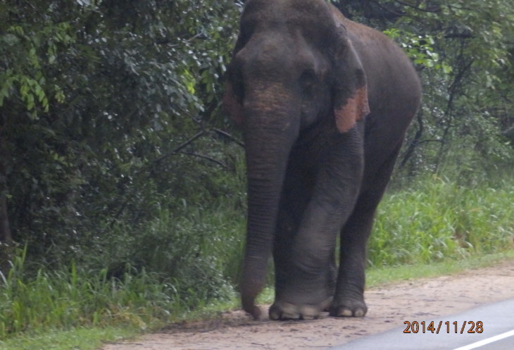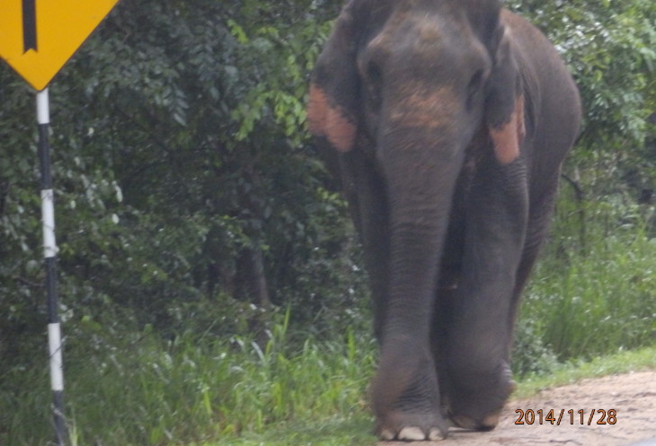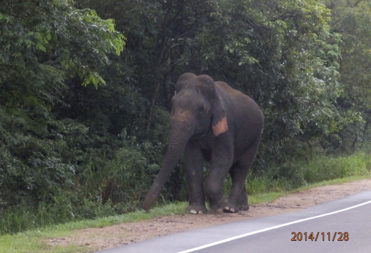 Вначале на дороге мы увидели совершенно дикого слона, который прохаживался по краю трассы, мы хотели выйти, но нам запретили пояснив это тем, что слон дикий и может набросится, потому любовались им мы из окна нашего баса.
