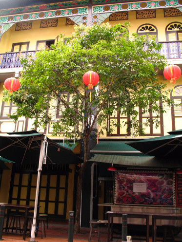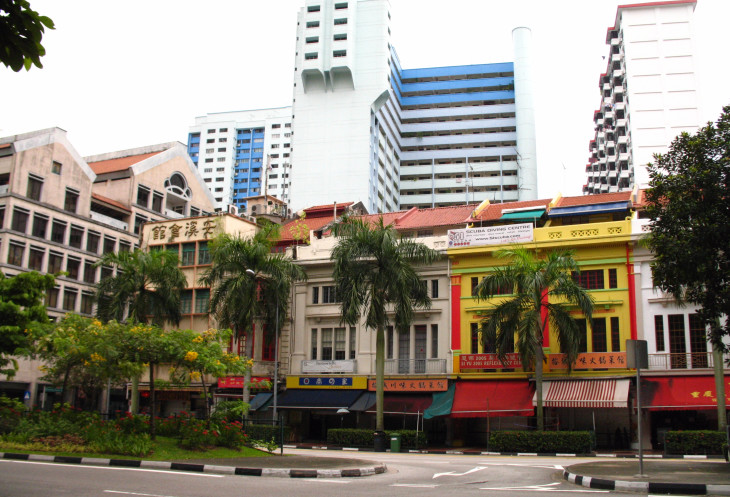 Примечательно, что в некоторых местах в Сингапуре встречные проезжие части, разделенные полосой с клумбами и деревьями, имеют разные названия. В нашем случае New Bridge Road ведет из центра, а навстречу в центр машины едут по Eu Tong Sen St.