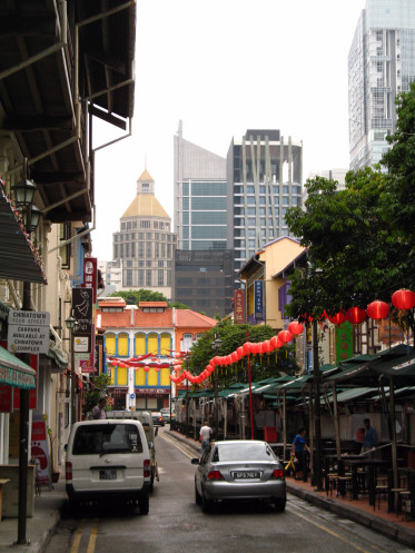 Обогнув многоэтажный дом по Outram Park и далее двигаясь по Outram Road мимо одноименной станции метро, опять оказываемся на одной из главных улиц района, которая проходит в том числе и через наш отель, - New Bridge Road. Далее идем вдоль китайского квартала, который находится с противоположной стороны магистрали, до надземного пешеходного перехода. В Сингапуре увидели одну интересную особенность - здесь довольно часто не только надземные переходы, но и просто тротуары оборудованы крышами/навесами. Скорее всего это связано с заботой о гражданах и гостях, ведь здесь практически каждый день может идти дождь, иногда весьма сильный. С таких переходов через улицы, как правило, открываются отличные виды во все стороны - ты как бы находишься на высоте 2-3 этажа и никакие объекты не заслоняют от тебя открывающиеся панорамы.