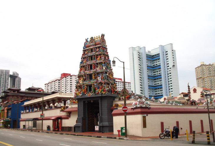 Быстро пройдя этнический район насквозь и повернув налево, случайно находим небольшой, но очень красивый индуистский храм, на карте он называется Sri Marriamman Temple. Выполненный в традиционном стиле, он украшен многочисленными фигурками богов, людей и животных, каждая из которых непохожа на другие и является самобытным произведением искусства.