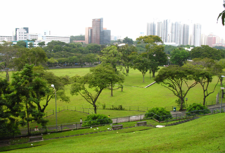 Одно из центральных мест парка - терраса Raffles , представляющая собой небольшой дом на возвышенности посреди нескольких круговых аллей. В этом месте концентрация видов растительности достигает максимума, что и неудивительно, так как основатель Сингапура Раффлс, увлекаясь ботаникой, основал здесь первый ботанический сад и свою резиденцию. Затем вследствие необходимости резиденция Раффлза была переоборудована в полноценный форт с оружейным складом, казармами, госпиталем. До Раффлза это место считалось запретным, так как в нем покоились духи древних местных правителей (раньше на вершине холма стояли их холмы). Во время Второй мировой войны в форте располагался пункт Малайского командования, а под холмом на глубине девяти метров был сооружен бункер командования британских войск Battle Box, в котором в 1942 году британцы приняли неоднозначное решение о сдаче Сингапура японцам. Сейчас - это излюбленное место жителей города, где проходит много различных мероприятий.