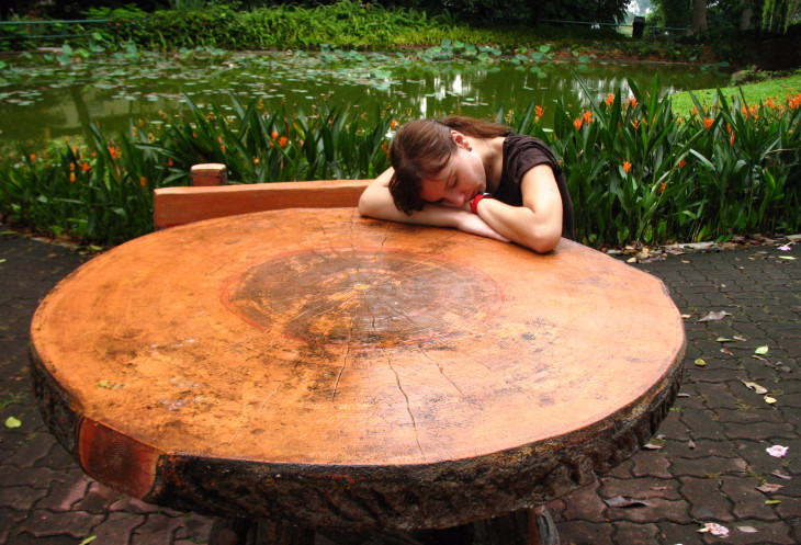Мы с Мариной после бессонной ночи в самолете не упустили возможности посидеть и подремать минут 10, положив головы на большой круглый стол из натуральных бревен. Набравшись сил и налюбовавшись видами, продолжаем наш путь.